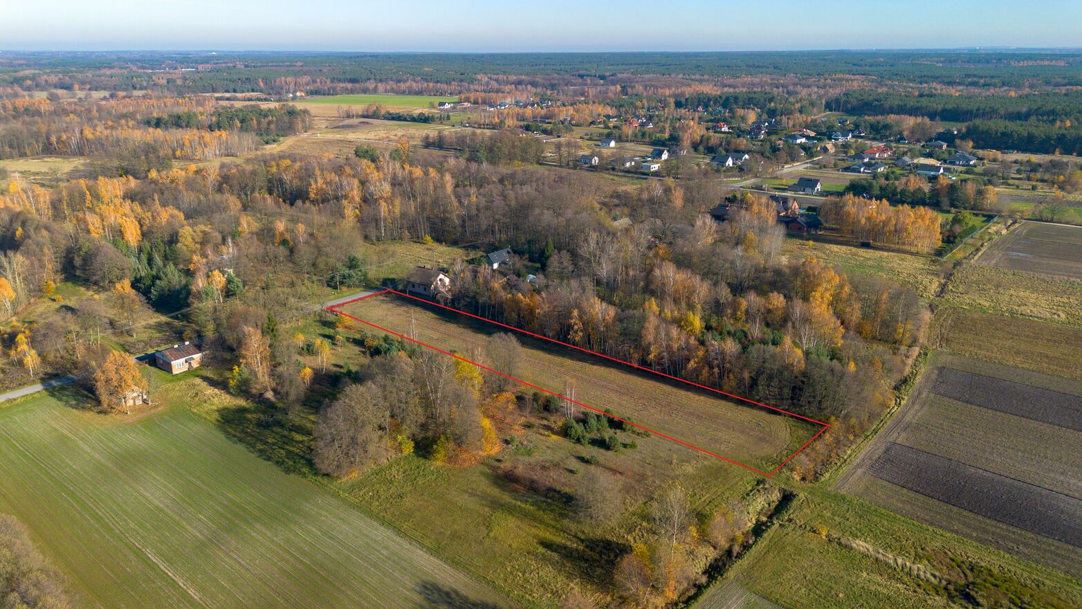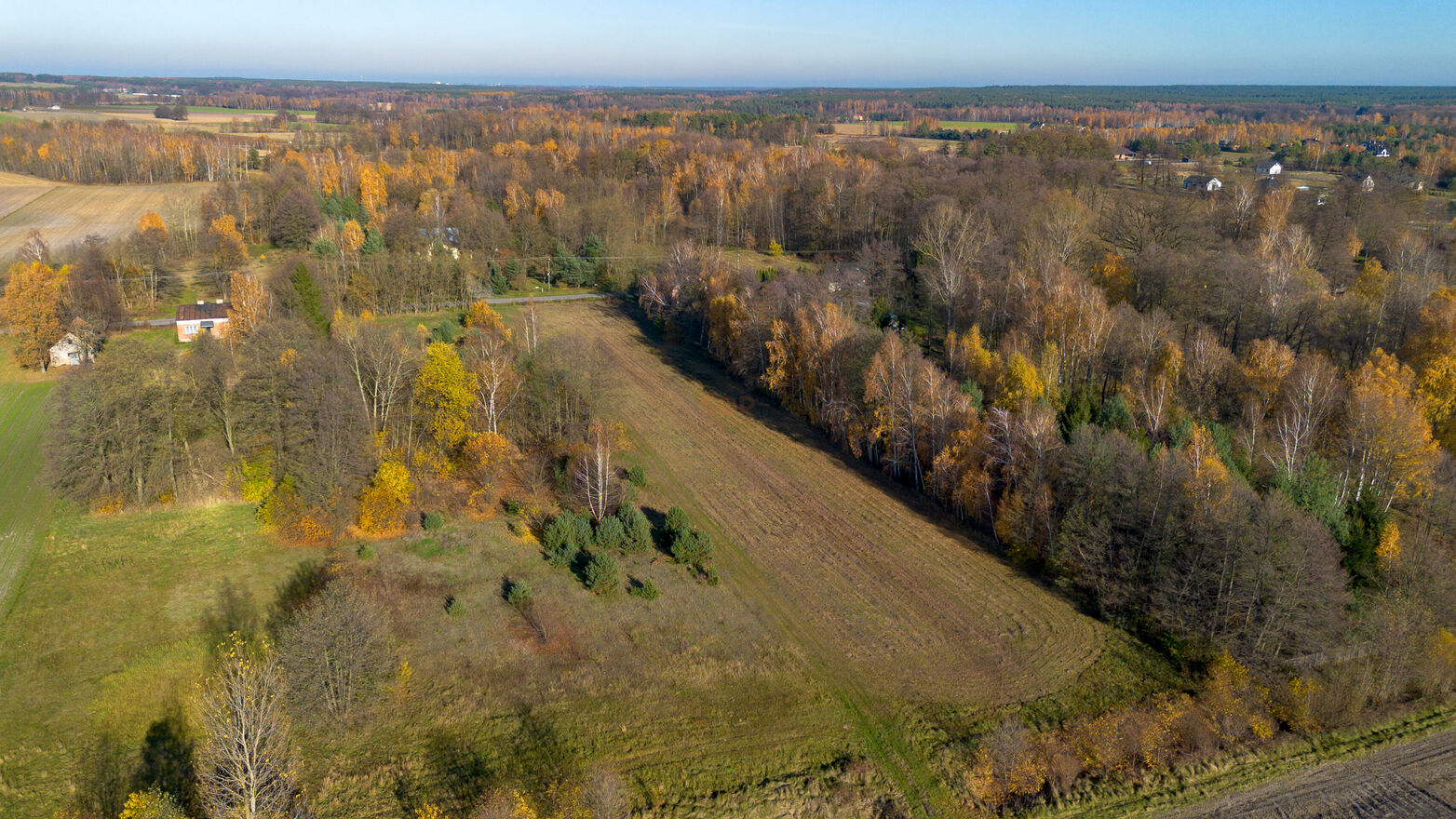 Działka położona jest w spokojnej i zielonej okolicy wśród lasów i niskich zabudowań w gminie Aleksandrów Łódzki.